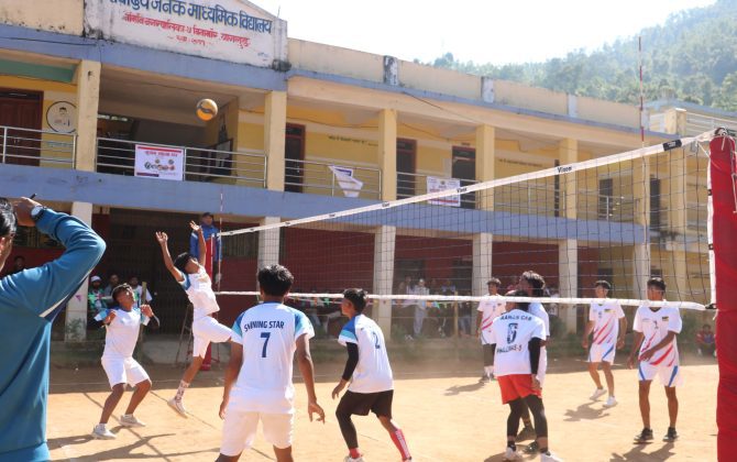 जैमिनि, बागलुङ । बागलुङ जिल्लाको जैमिनी नगरपालिका–५, बिनामारेस्थित चम्किलो तारा युवा क्लबले आयोजना गरेको खुल्ला वडा स्तरीय पुरुष भलिबल प्रतियोगिता अन्तरगत आज सनिबार दुई खेल सम्पन्न भएका छन ।