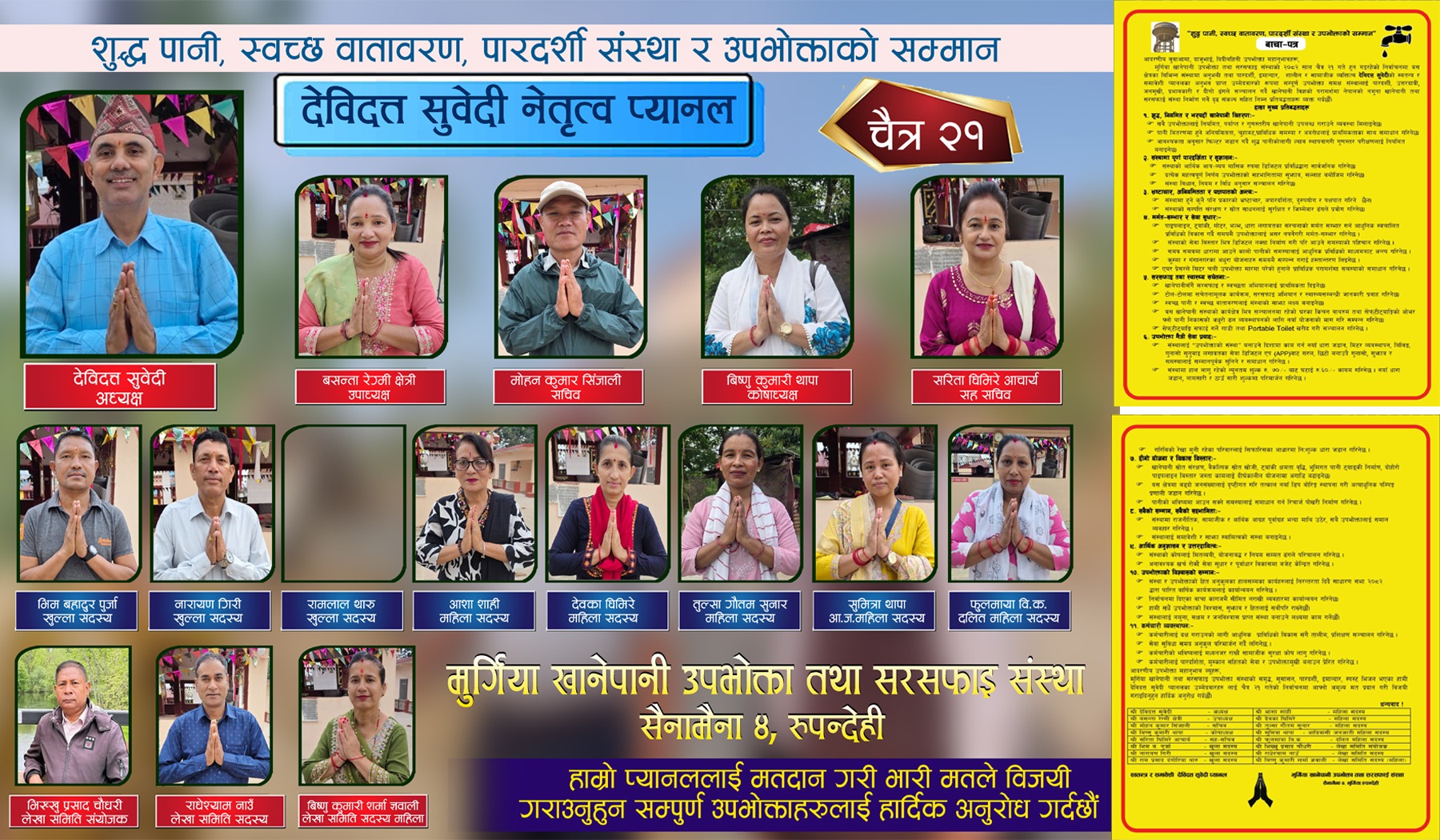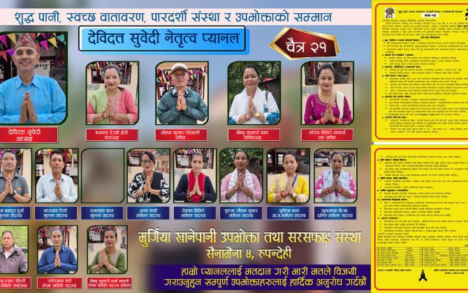 विमल गैरे, सैनामैना । मुर्गिया खानेपानी उपभोक्ता तथा सरसफाइ संस्थाको आसन्न...