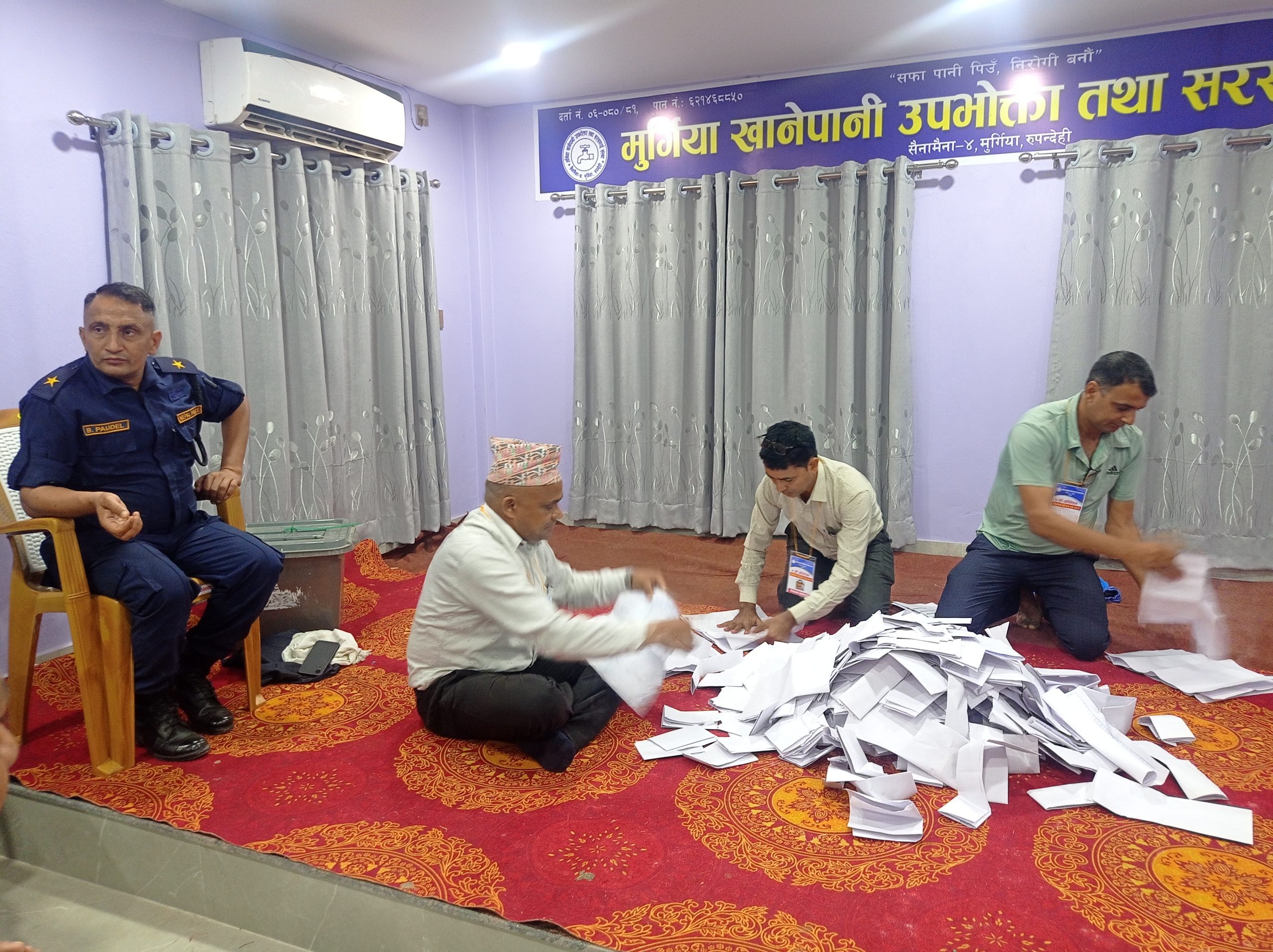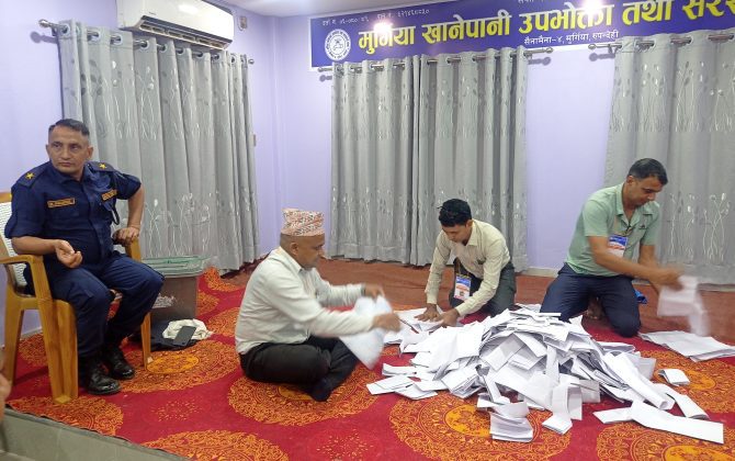 बिमल गैरे, सैनामैना । सैनामैना नगरपालिका–४ मुर्गियास्थित मुर्गिया खानेपानी उपभोक्ता तथा सरसफाई संस्थाको नयाँ नेतृत्व चयनका लागि भएको निर्वाचनपछि मतगणना प्रक्रिया जारी रहेको छ। शनिवार सम्पन्न मतदानमा कुल ४,६८६ उपभोक्ता मध्ये २,८७१ जनाले मतदान गरेका थिए। अहिले खानिपानीको सभाहलमा मतगणना जारिछ पछिल्लो ४०० मत गन्दा अध्यक्ष पदमा लाल बहादुर रावलले १७४ मतसहित...