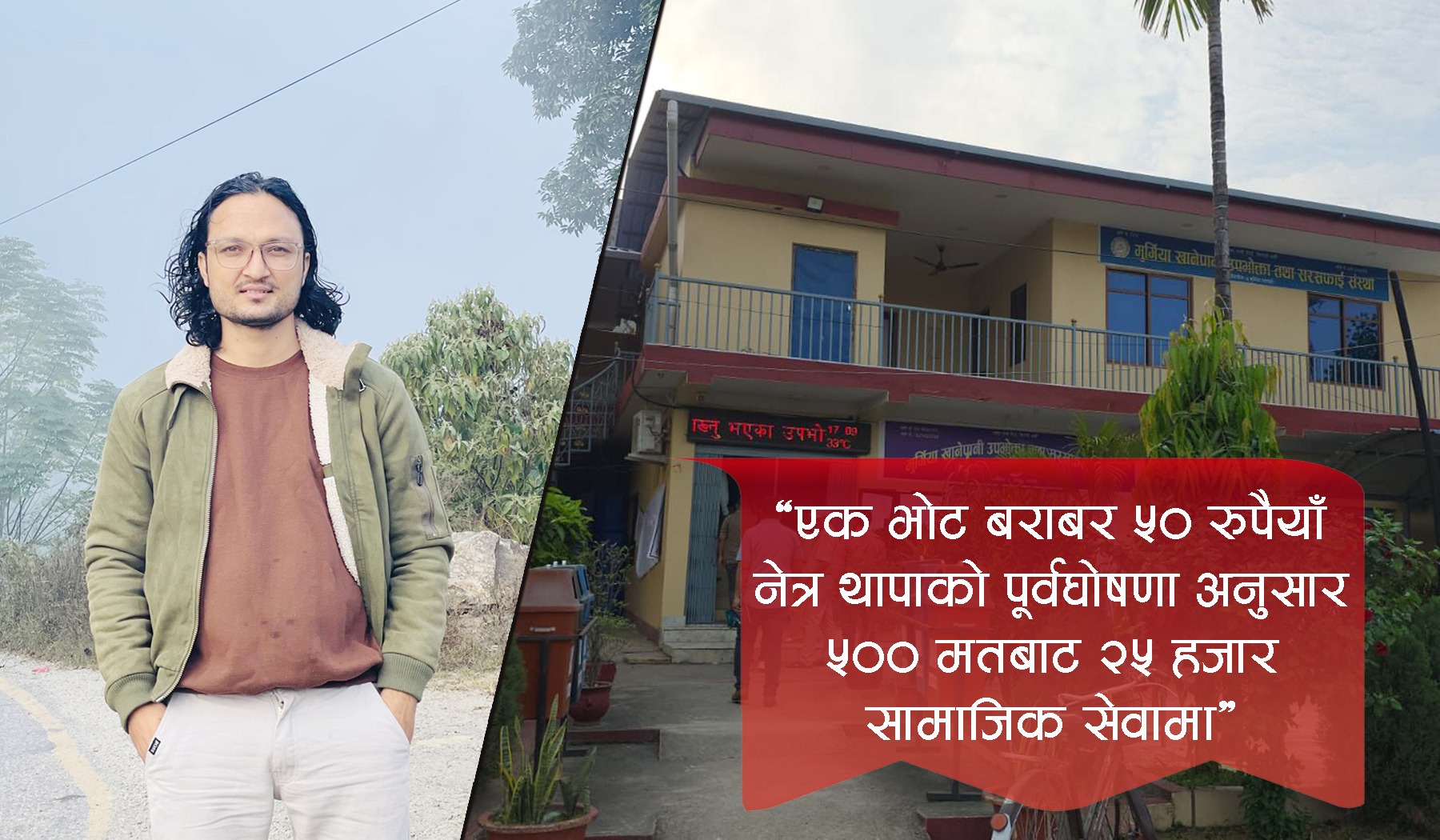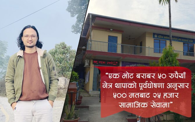 एक भोट बराबर ५० रुपैयाँ, नेत्र थापाको पूर्वघोषणा अनुसार ५०० मतबाट २५ हजार सामाजिक सेवामा